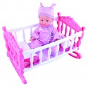 Dolce bambolotto con la sua culla. Copertina e cuscino inclusi.