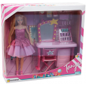 Tanya, con il suo abito da sera brillantinato, ha tutto l’occorrente per farsi bella grazie al suo accessoriato salone di bellezza.