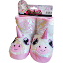 Stivaletti-pantofola a forma di unicorno con criniera arcobaleno! Sono ricoperti da uno strato di luccicanti paillettes che, sfiorandole, cambiano colore!